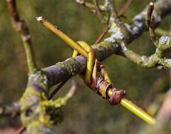 Ивовые прутья — натуральный обвязочный материал. Со временем их связывающая сила слабеет, так что нет опасности, что прутья врастут в кору увеличивающихся в размере ветвей.